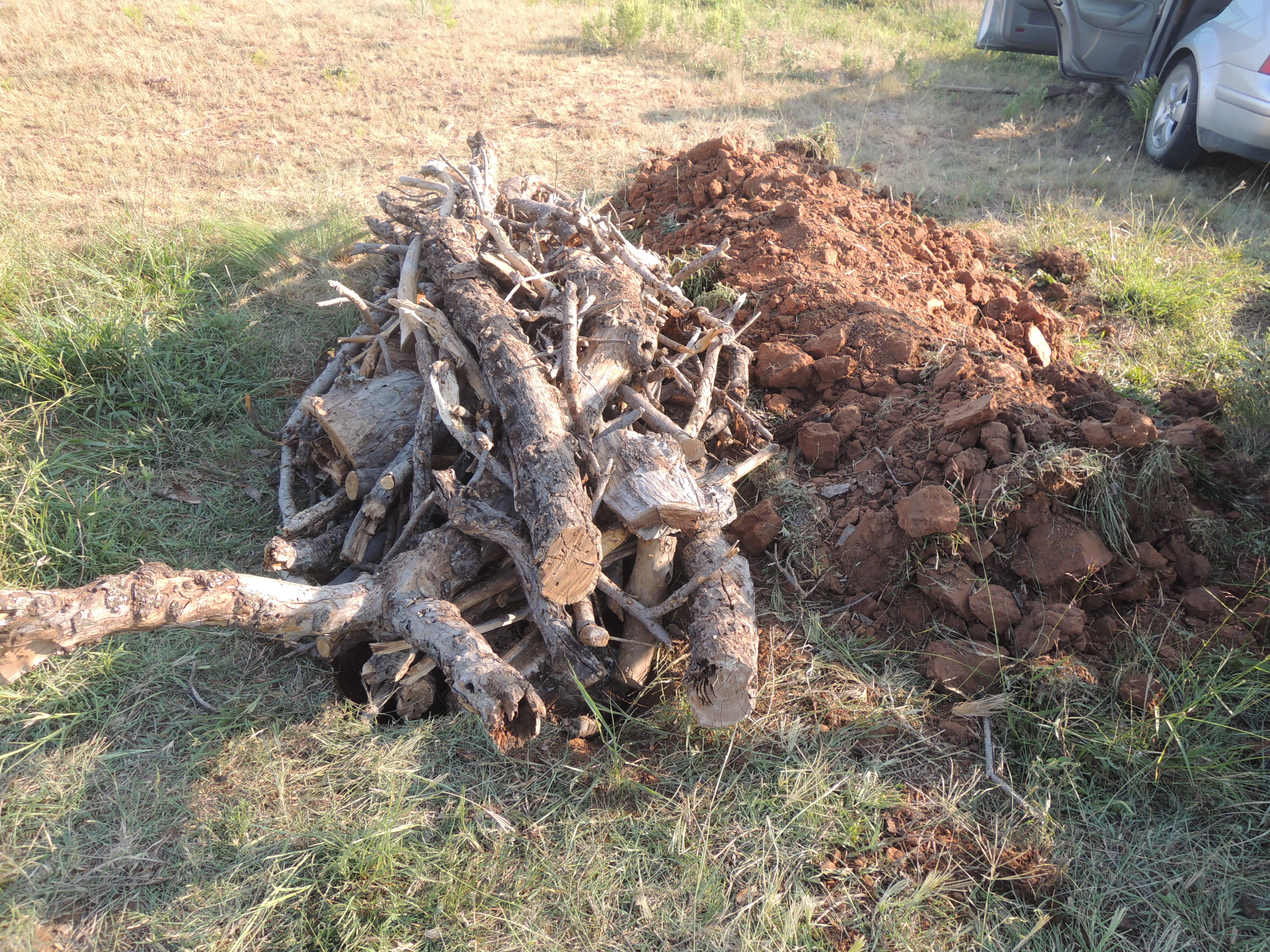 Piled up sticks in the hugelkulture.